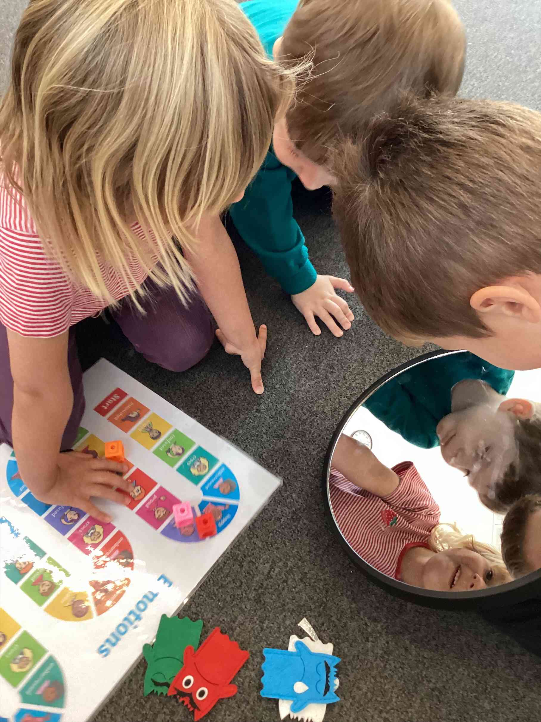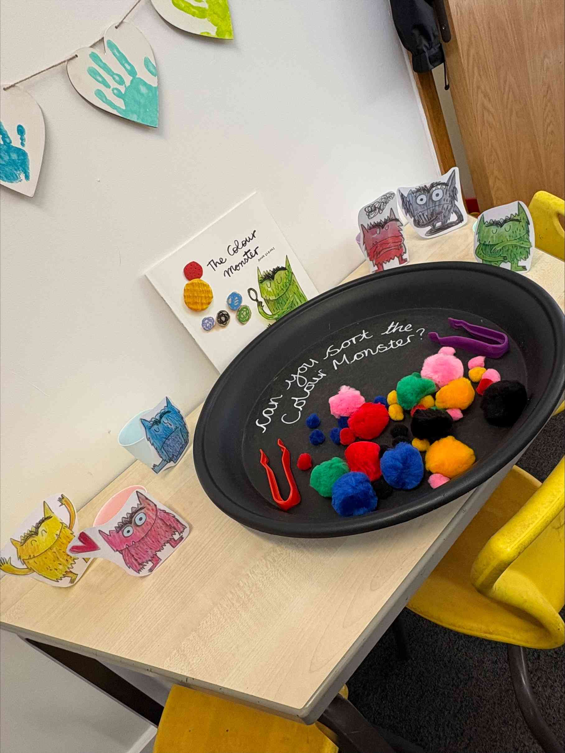 In Nursery last week our book was “The Colour Monster”, and we enjoyed activities exploring our feelings, sorting colours and retelling the story with finger puppets. We made playdough monsters, discovered a little bit about raindrops and how the weather makes us feel.