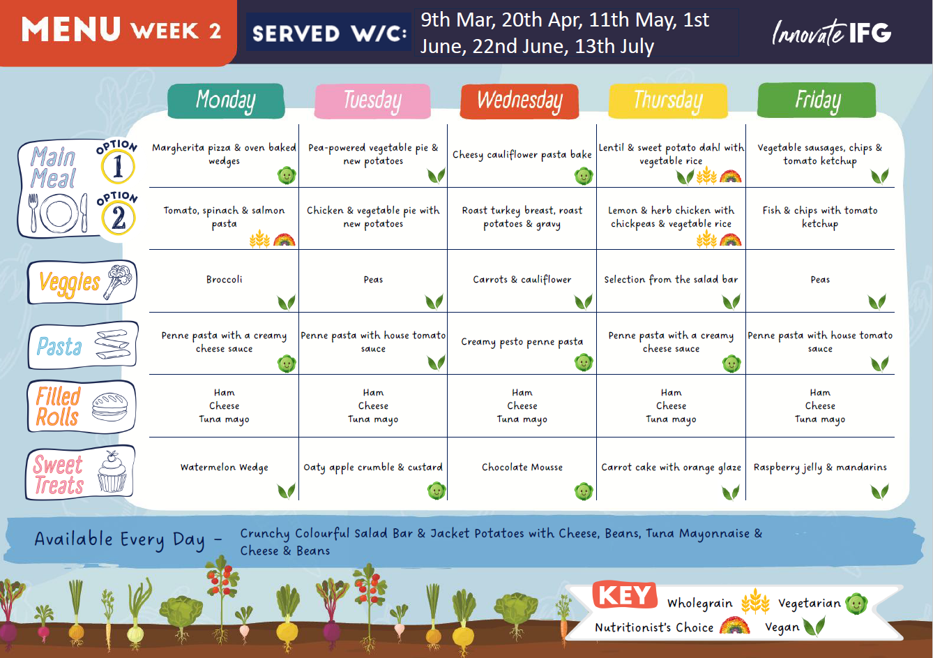 Meal menus - Monday 20th April - Tuesday 21st July